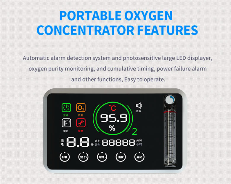 - Automatic alarm detection system and photosensitive LED display, oxygen purity monitoring, and cumulative timing, power failure alarm and other functions, Easy to operate.