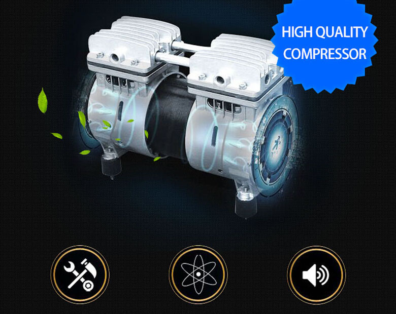 - Oil-free patented compressor, lifetime is over 25000 hours.